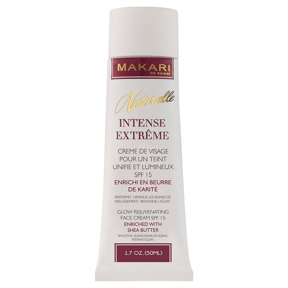 Makari Naturalle vous permet d’obtenir un teint sain, clair et radieux. Formulée pour les peaux sèches à normales, cette crème Intense Extrême contient un écran solaire SPF15, du Beurre de Karité hydratant et la Végéclairine notre actif éclaircissant à base de plantes. Appliquez chaque jour sur les zones à traiter du visage et du corps pour révéler un teint unifié et plein de jeunesse. L’action régénérante de cette crème adoucit la peau et lisse les rides et ridules.